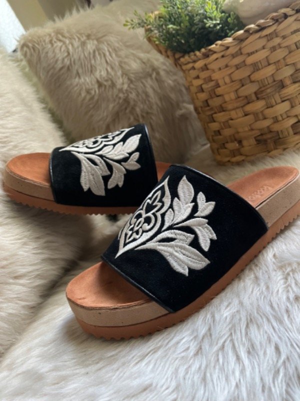 Forradas en cuero. Su base es anatómica y antideslizante. Horma cumplida por lo que recomendamos el talle de uso habitual.