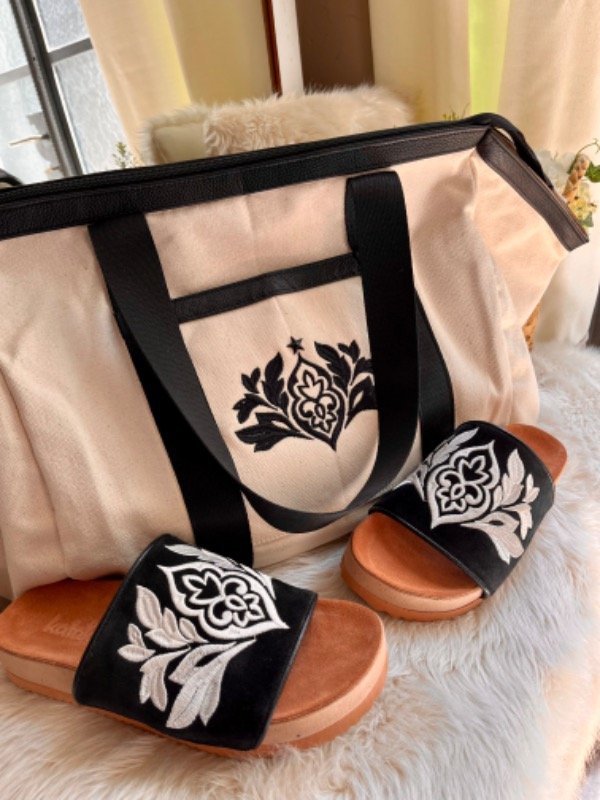 Cuero genuino 100%. Color negro con importante bordado a contra tono que hace de este modelo un diseño exclusivo.