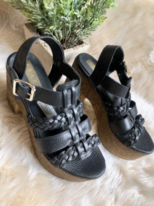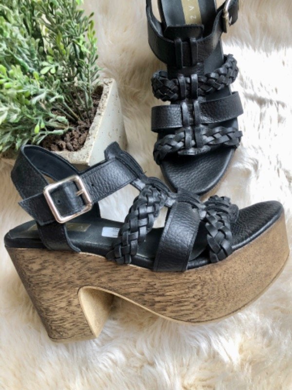 Sandalia cuero trenzado negro, forrada en PU.Taco de 09 cm y plataforma de 4 cm